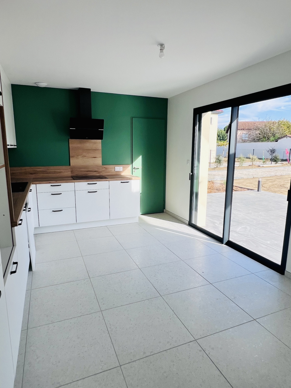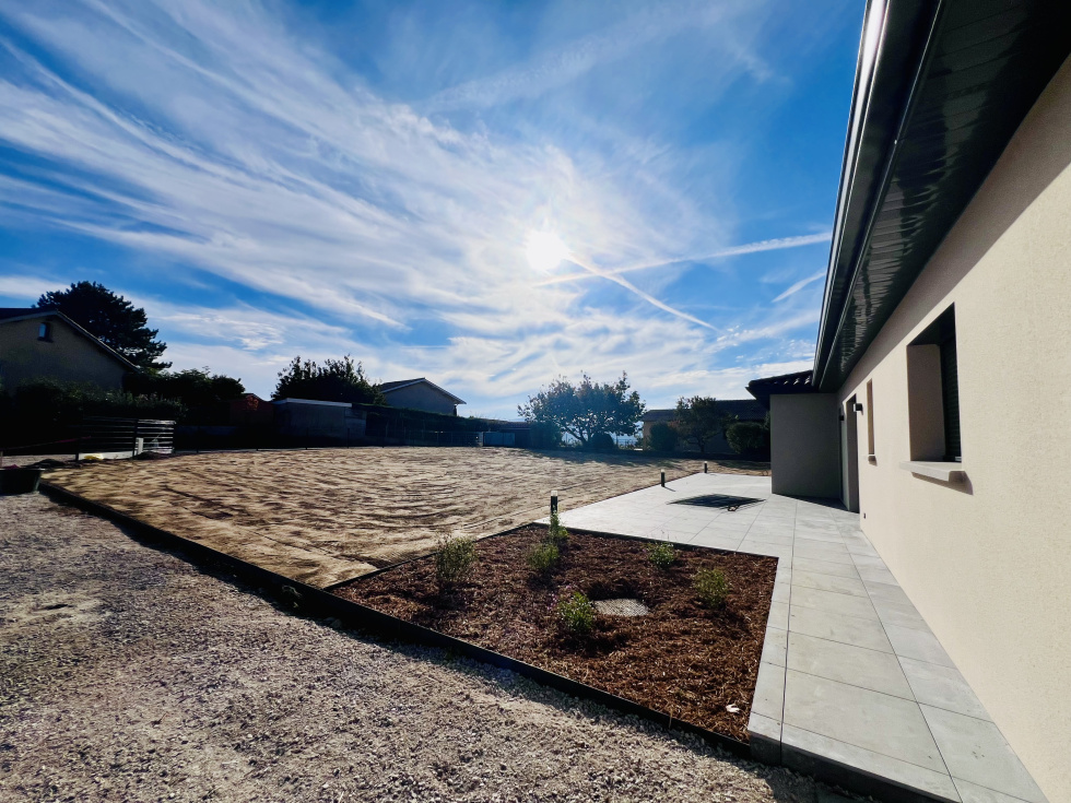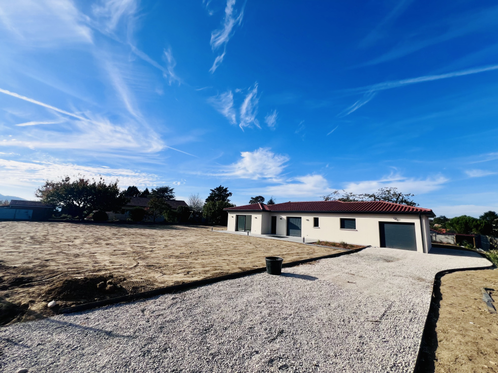 A quelques mètres du centre de MONTANAY, Rue du Villard, sur une parcelle de 1530m² de terrain plat, Maison individuelle neuve, livrée en Aout 2025, de125m². De plain pieds elle se compose d'une entrée avec placard mural, d'une vaste cuisine meublée et partiellement équipée (plaque, four et hotte) attenant à une buanderie. 4 chambres de tailles similaires, avec placards muraux aménagés, dont une avec accès direct sur l'extérieur, idéal si profession libérale.Une salle de bains familiale, une salle d'eau, 2 WC, un vaste séjour ouvrant sur une terrasse dallée de 55m² exposition sud. Garage box fermé pour un véhicule.Terrain plat qui sera entièrement clôturé avec portail électrique et interphone sous quelques semaines.Huisseries double vitrage, BSO, Volets roulants électriques, pompes à chaleur réversible, plancher rafraichissant. Belles prestations et finitions. Disponible de suite. A venir découvrir et à saisir sans tarder!
