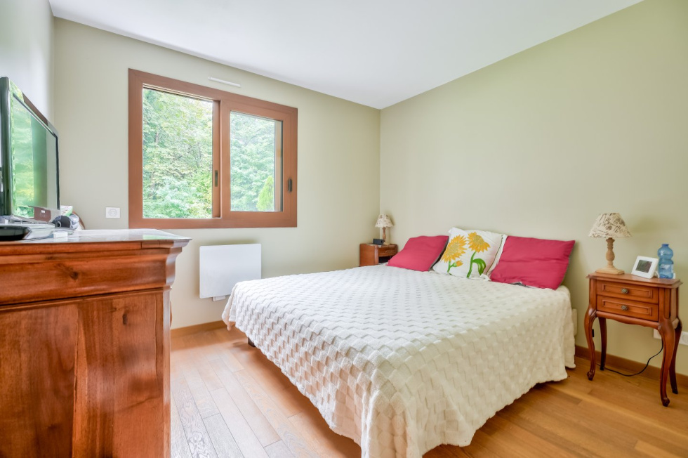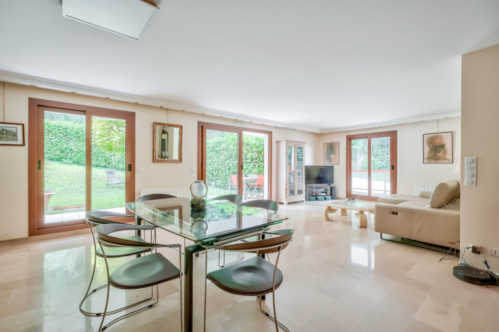 Dans un espace bucolique, entouré de verdure, superbe rez-de-jardin de 4 pièces sans vis à vis. D'une surface carrez de 103,45 m², il comprend une spacieuse pièce à vivre de 55m² en angle, donnant à la fois sur la terrasse de 20m² suivi d' un jardin de 110m² au Sud, ainsi que sur le balcon de 8m² à l'Ouest. Le coin nuit dispose de trois chambres de 10,60 à 11,60 m², d'une salle de bains, d'une salle de douche et toilettes indépendantes. De nombreux rangements ont été aménagés, dans les chambres, à côté de la cuisine avec un dégagement de 3,59m² et sur la terrasse avec un cellier de 5m². Concernant la copropriété, intimiste avec deux petits immeubles de 3 étages, très bien entretenue, sans travaux à prévoir. 15 places sont disponibles pour accueillir les visiteurs. La copropriété comprend 18 lots pour un montant annuel de la quote part du budget prévisionnel des dépenses courantes de 3 600€. Le montant moyen estimé des dépenses d' énergie est entre 1860 et 2550 €. Les informations sur les risques auxquels ce bien est exposé sont disponibles sur le site Géorisques.